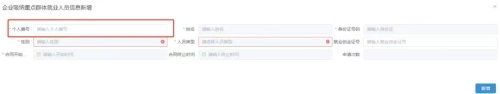 請注意紅色字體:如果單位有符合條件的登記失業(yè)滿半年以上的人員,在下面的列表里面會自動查詢出來,如果是需要驗證是否是建檔立卡貧困人口,就點擊右邊的新增按鈕,然后就會看到下面的模塊彈出。